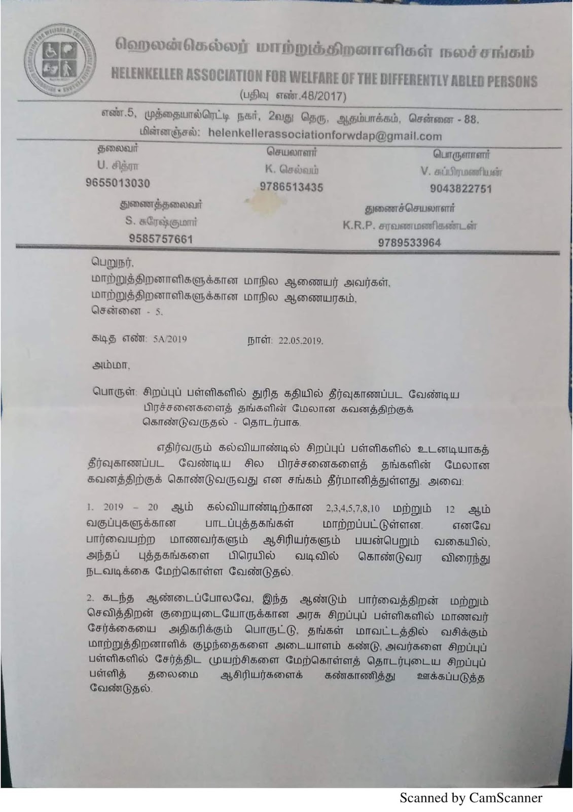 Categories association letters சிறப்புப் பள்ளிகளில் துரித கதியில் தீர்வு காணப்படவேண்டிய பிரச்சனைகள்: மாற்றுத்திறனாளிகள் நல ஆணையருக்கு ஹெலன் கெல்லர் மாற்றுத்திறனாளிகள் நலச்சங்கம் முன்வைத்த கோரிக்கைகள்: Post author By தொடுகை மின்னிதழ் Post date 27th May 2019 No Comments on சிறப்புப் பள்ளிகளில் துரித கதியில் தீர்வு காணப்படவேண்டிய பிரச்சனைகள்: மாற்றுத்திறனாளிகள் நல ஆணையருக்கு ஹெலன் கெல்லர் மாற்றுத்திறனாளிகள் நலச்சங்கம் முன்வைத்த கோரிக்கைகள்: வெற்றித்தடாகம்: நமக்கான ஊடகம், – நமக்கு நாமே ஊடகம் Discover more from தொடுகை Subscribe to get the latest posts sent to your email. Type your email… Subscribe பகிர Click to share on Facebook (Opens in new window) Facebook Click to share on X (Opens in new window) X Click to print (Opens in new window) Print Click to email a link to a friend (Opens in new window) Email Click to share on WhatsApp (Opens in new window) WhatsApp Click to share on Telegram (Opens in new window) Telegram Like Loading... Related ← மாற்றுத்திறனாளிகளுக்கே அநீதி இழைக்கும் மாற்றுத்திறனாளி நலத்துறை ஆணையர் மற்றும் செயலரை உடனடியாக மாற்றுக! டாராட்டக் கோரிக்கை: → பணியிட மாறுதல் 2019-20 அரசாணை உங்கள் கருத்தைப் பதிவு செ்யவும். Cancel reply Δ