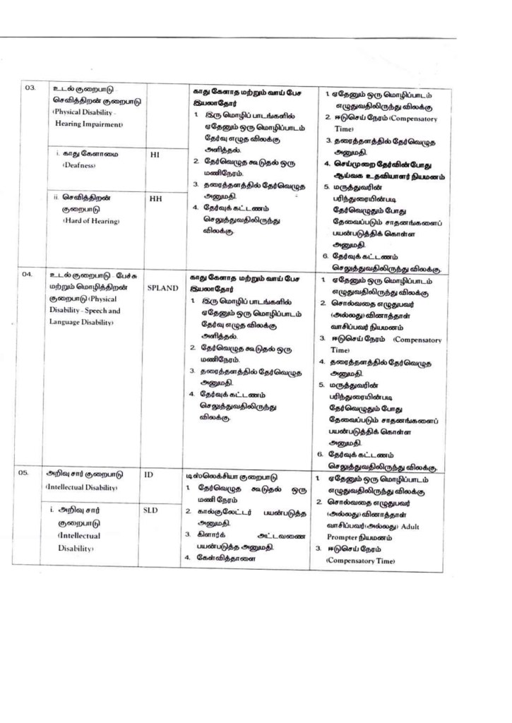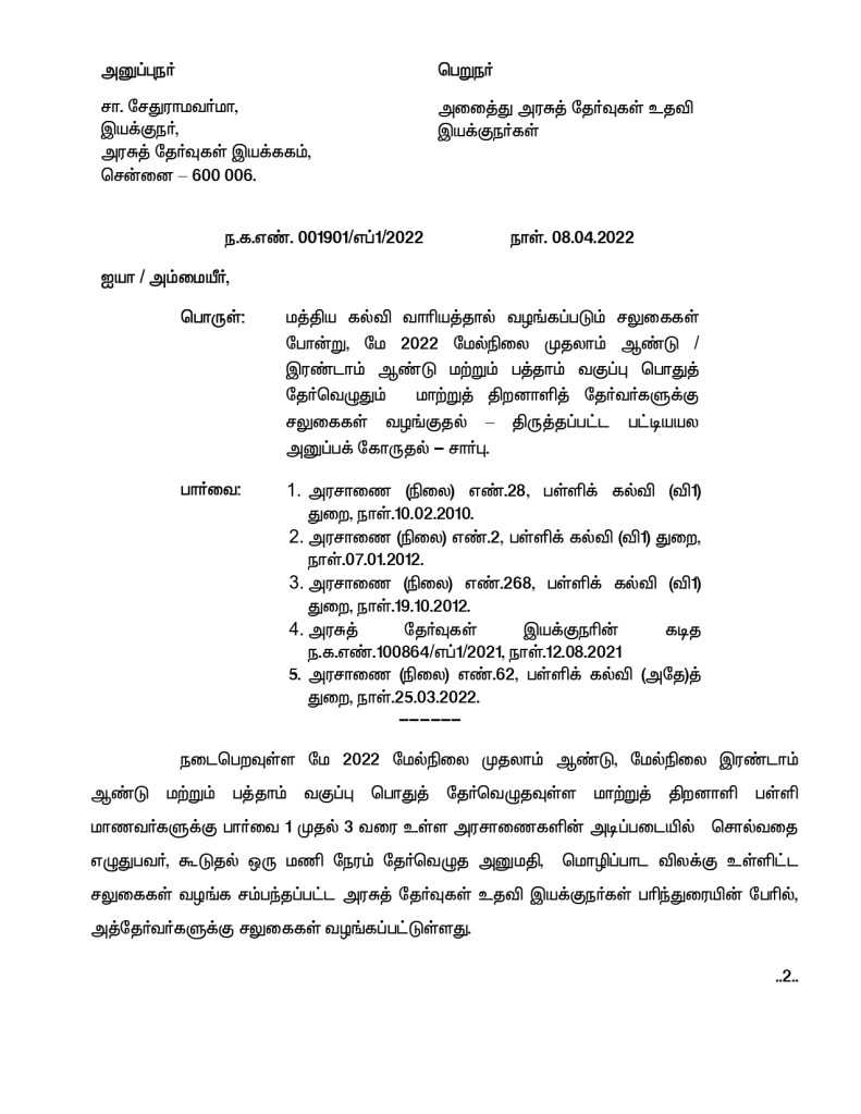 அரசாணைநிலைஎண்.62, பகஅ.தேத்துறை, நாள் 25.03.2022-ல் இடம்பெற்றுள்ள தேர்வுக்கான சலுகைகள் அட்டவணையில் உடனடியாகத் திருத்தங்கள் மேற்கொள்ளப்பட வேண்டும். ஏதேனும் ஒரு மொழிப்பாடத்திலிருந்து பார்வைத்திறன் குறையுடைய மாணவர்களுக்கு வழங்கப்பட்டிருக்கிற விலக்கு என்கிற அம்சம் அகற்றப்பட வேண்டும்.